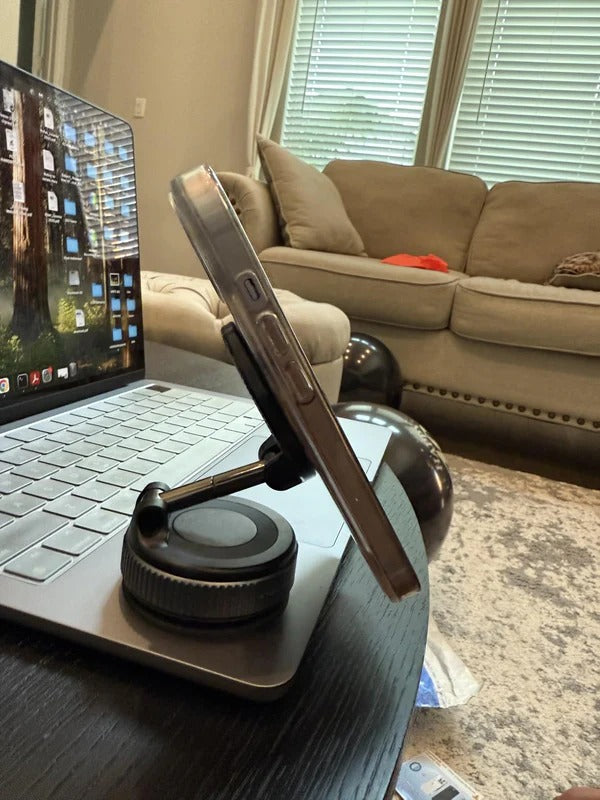 SnapStand uses dual N52 magnets+ avacuum-lock gel baseto create a rock-solid hold. It’s strong enough to hold even large phones like the iPhone 15 Pro Max or Galaxy Ultra securely.